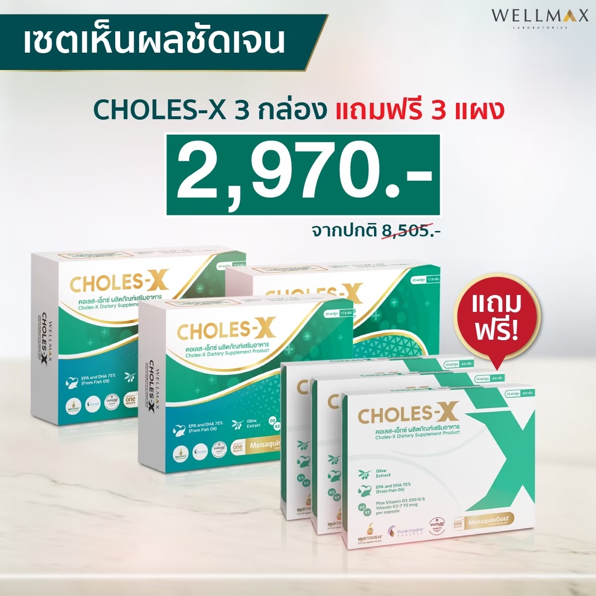 - ลดปริมาณไขมันไตรกลีเซอไรด์ Choles – X เลือกใช้สารสกัดที่ช่วยลดปริมาณไขมันไตรกลีเซอไรด์ให้ลดลง ลดความเสี่ยงโรคร้าย