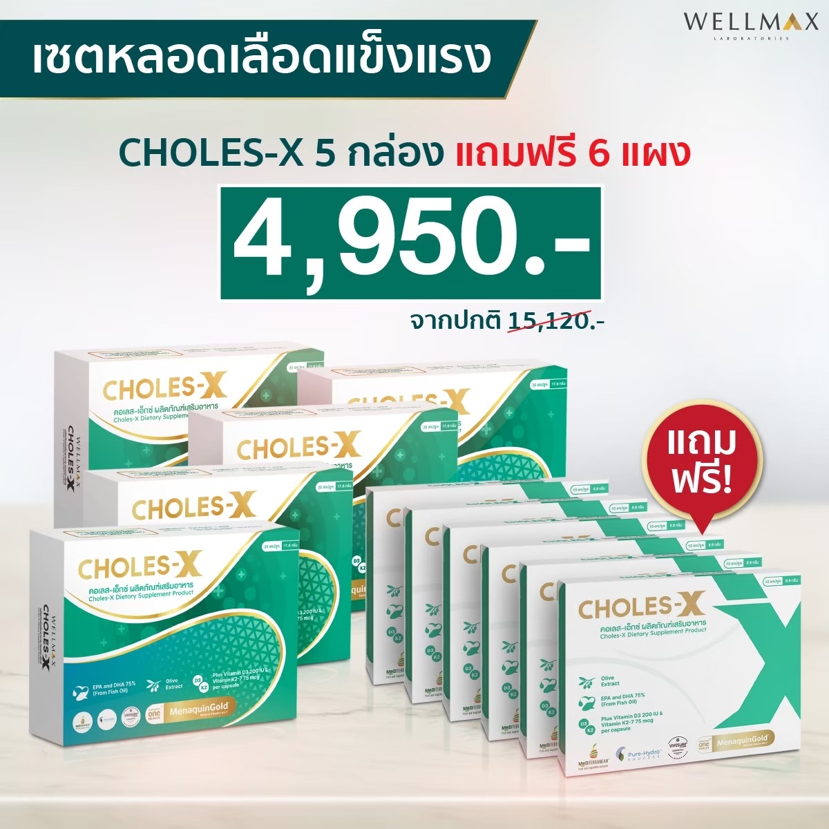 - ลดปริมาณแคลเซียมเกาะที่หลอดเลือด Choles-X ช่วยลดปริมาณแคลเซียม ที่เกิดจากการแข็งตัวของหลอดเลือด ลดอัตราการตายด้วยโรคหัวใจ และหลอดเลือดได้